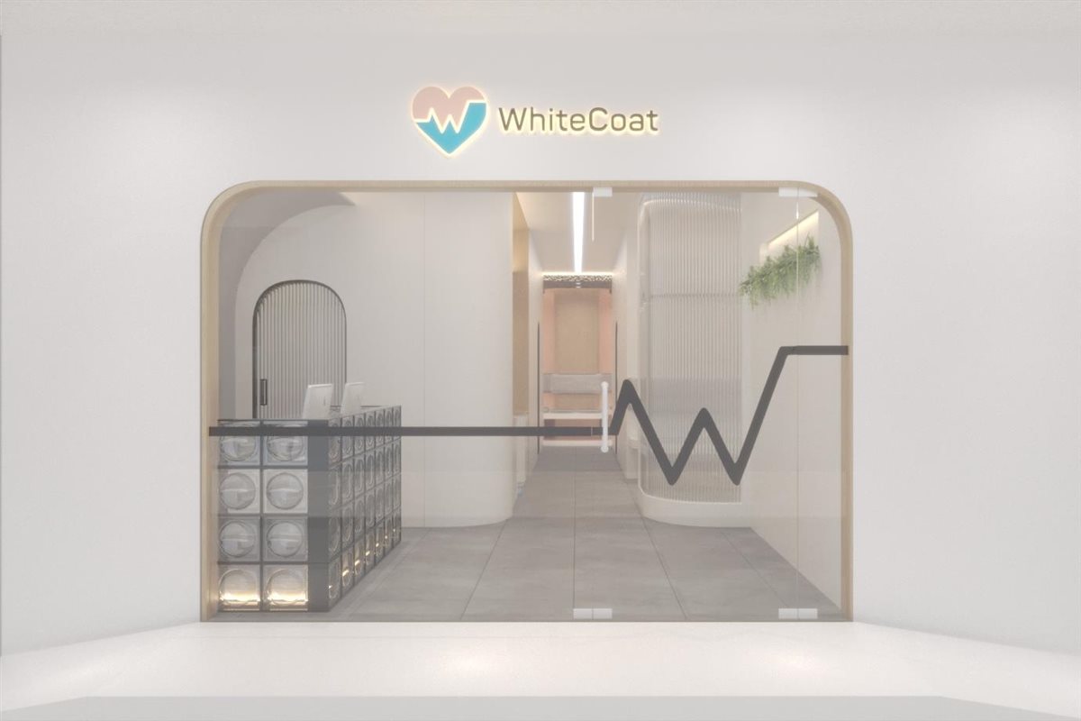 This medical clinic draws inspiration from the company's iconic logo and underlying philosophy. The use of a clean and sterile white color palette is a representation of the doctor's white coat, while the pastel pink and blue create a striking contrast reminiscent of the colors often associated with pills. The space exudes cleanliness and a futuristic ambiance, reflecting Whitecoat's status as a cutting-edge telemedicine application that leverages advanced technology, with scientific elements incorporated into the design, like the heartbeat graphics that is found in the interior.